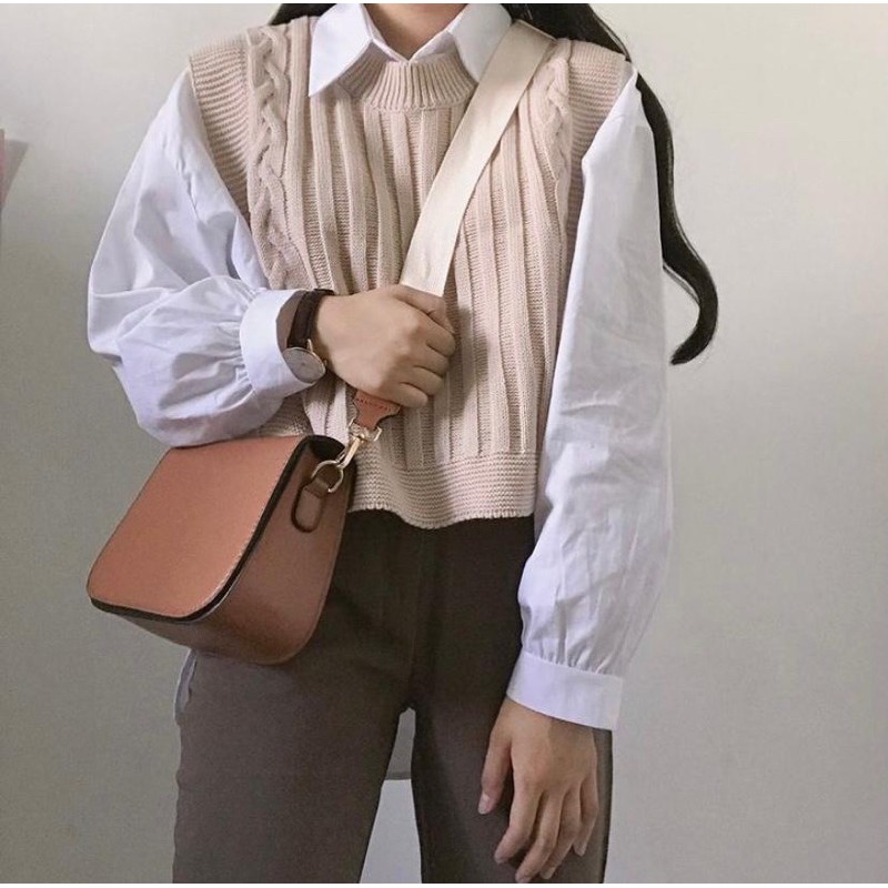 Jual Rompi Vest Rajut Wanita Korea Murah Bagus Cream